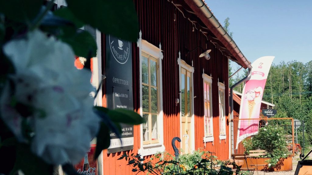 Här serveras hembakat och i butiken finns dvs presentartiklar, hantverk, loppis, vår, sommar och höstblommor, perenner, godis och mycket mer. Njut av en avkopplande stund i vår trädgård med hästar betandes i hagen bredvid. Eller välj att sitta inne vid vår sprakande brasa och mys.