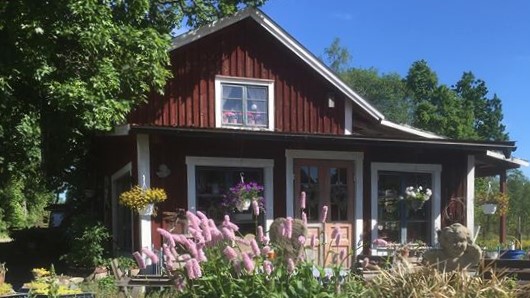 Här serveras hembakat och i butiken finns dvs presentartiklar, hantverk, loppis, vår, sommar och höstblommor, perenner, godis och mycket mer. Njut av en avkopplande stund i vår trädgård med hästar betandes i hagen bredvid. Eller välj att sitta inne vid vår sprakande brasa och mys.